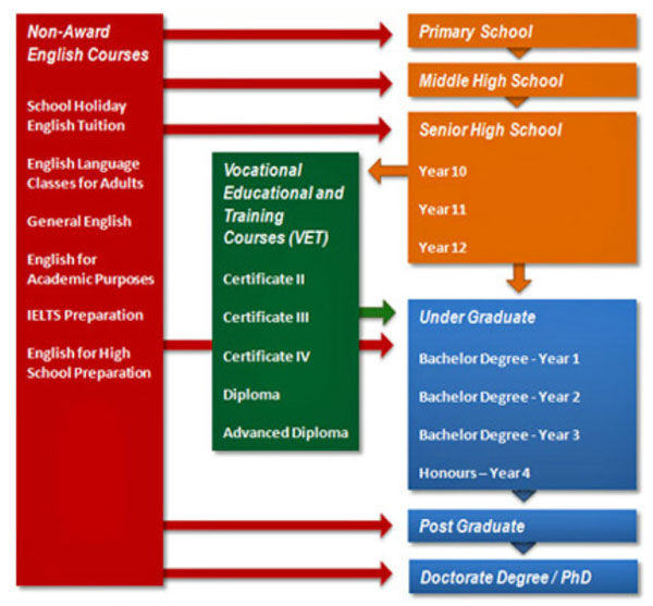 สำหรับผู้สนใจเรียนต่อออสเตรเลีย ควรทราบถึงระบบการศึกษาของออสเตรเลีย ระบบการศึกษาของออสเตรเลียแบ่งออกเป็น 4 ระดับ อนุบาลศึกษา ประถมศึกษา มัธยมศึกษา และอุดมศึกษา ซึ่งประกอบด้วยวิทยาลัยเทคนิคและการศึกษาต่อเนื่อง ( TAFE) และมหาวิทยาลัย การศึกษาภาคบังคับของออสเตรเลียเริ่มตั้งแต่ ประถมศึกษาปีที่ 1 ถึงปีที่ 10 (Year 1-10) หรือระหว่างอายุ 6-15 ปี เมื่อนักเรียนจบการศึกษาภาคบังคับแล้ว ก็สามารถเข้าสู่ตลาดแรงงาน หรืออาจศึกษาต่อหลักสูตรระยะสั้นในวิทยาลัย TAFE หลังจากจบการศึกษาภาคบังคับแล้วนักเรียนส่วนใหญ่เลือกเรียนต่อในระดับมัธยมศึกษาตอนปลายอีก 2 ปี เพื่อเตรียมตัวเข้ามหาวิทยาลัยและวิทยาลัยเทคนิคในระดับอุดมศึกษา สำหรับนักศึกษาต่างชาติสามารถสมัครเข้าเรียนได้ตั้งแต่ระดับชั้นมัธยมปีที่ 1 (Year 7) จนถึงปริญญาเอก ทั้งในสถาบันของรัฐและเอกชน